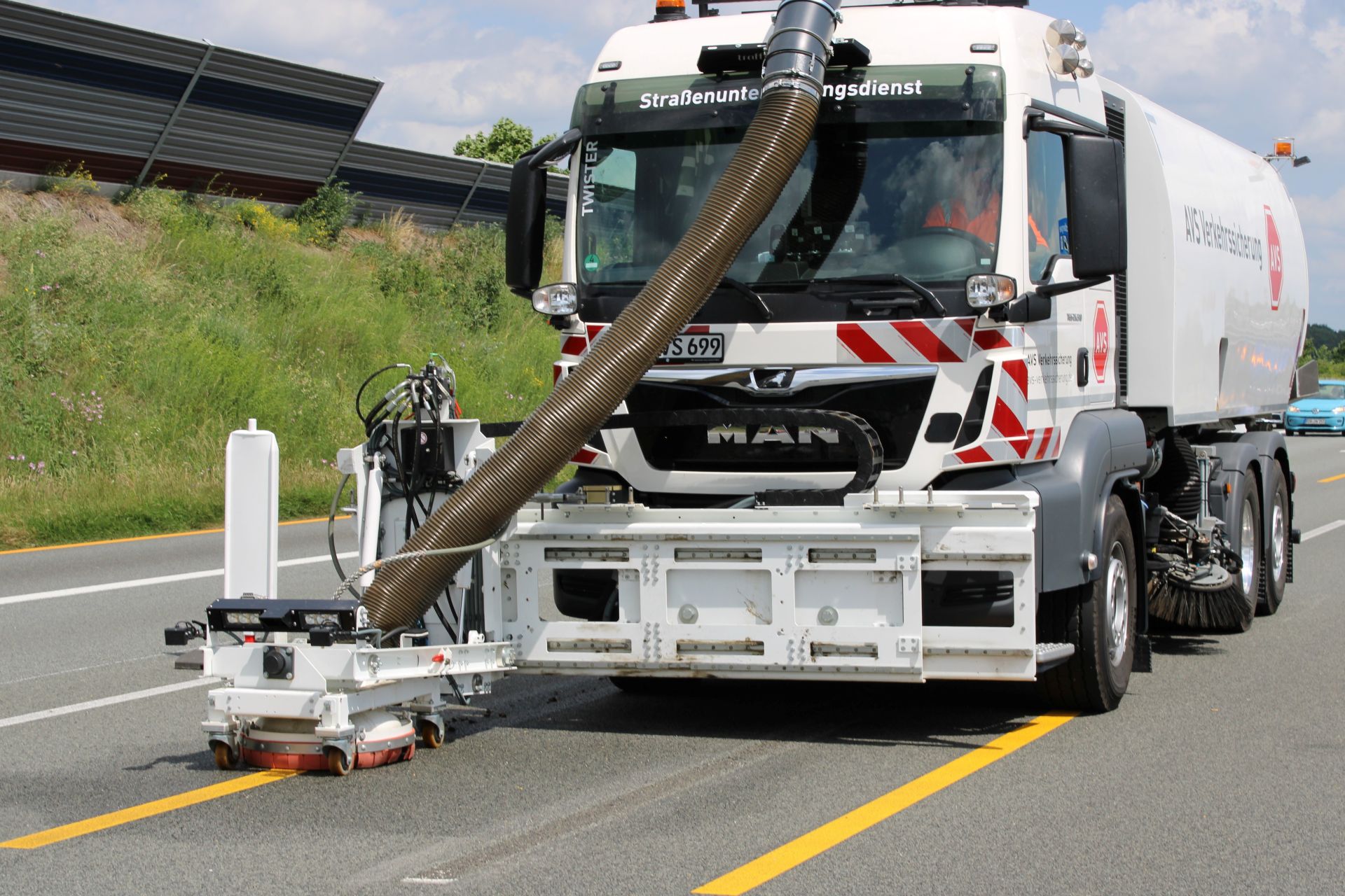 Der AVS-Twister ist deutschlandweit im Einsatz und sorgt für eine professionelle und reibungslose Demarkierung, damit der Verkehr wieder schnell und effizient fließen kann.