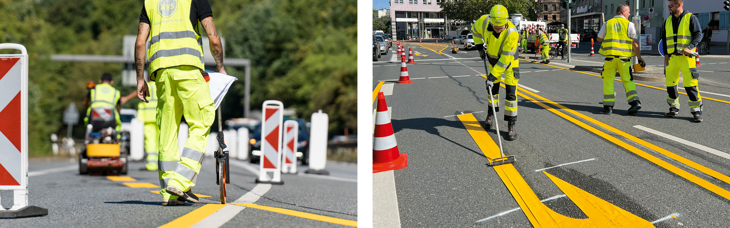 Die AVS bringt langjährige Erfahrung und ein breites Portfolio an Materialien und Techniken mit, um diesen hohen Anforderungen gerecht zu werden. Als verlässlicher Partner bieten wir individuell angepasste Lösungen für Fahrbahn- und Verkehrsflächenmarkierungen, die Sicherheit, Beständigkeit und Sichtbarkeit bei allen Wetterbedingungen gewährleisten.